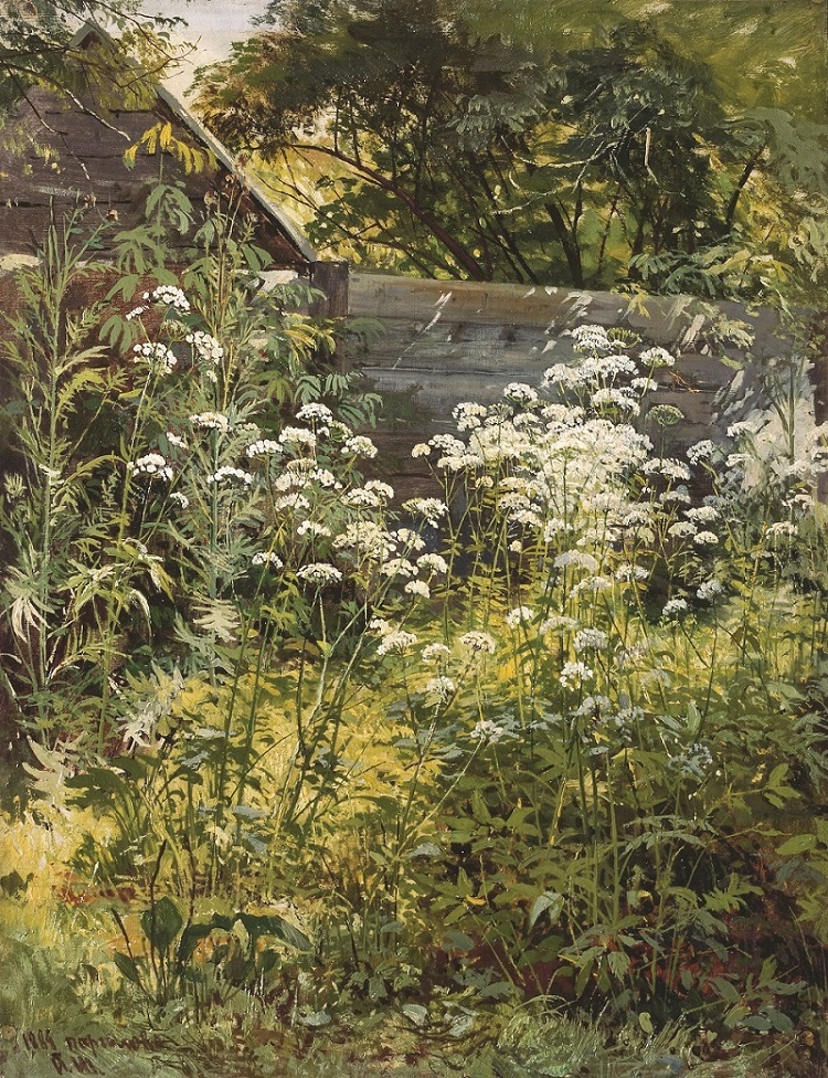 Sometimes, I.I. Shishkin’s studies, while remaining a memorable impression of some motif that he liked, become self-contained art pieces as evidenced by the painting Corner of an Overgrown Garden. Goutweed. Art lovers know Shishkin as an author of epic landscapes, whose canvases usually feature powerful oaks, slender pines, impassable thickets. But the artist was also interested in grasses, mosses, ferns – everything that is called the “forest ground floor”. The world of nature is not divided into the small and the large, and the landscape painter, in love with it, could not overlook any of its details. In 1860, after graduating from the Academy of Arts with a large gold medal, Shishkin went for his scholarship trip not to Italy or France, but to Germany. It was in the Düsseldorf school of painting that he got a special love for the natural world. There are several goutweed studies painted in 1884 in Pargolovo on the outskirts of St. Petersburg, a place visited by many celebrities. Having painted thickets of tall, slender stems with white umbels and honey scent, the artist emphasises the significance of this unassuming motif. Despite being called a study, the picture has the expressiveness of a strong full-scale painting.