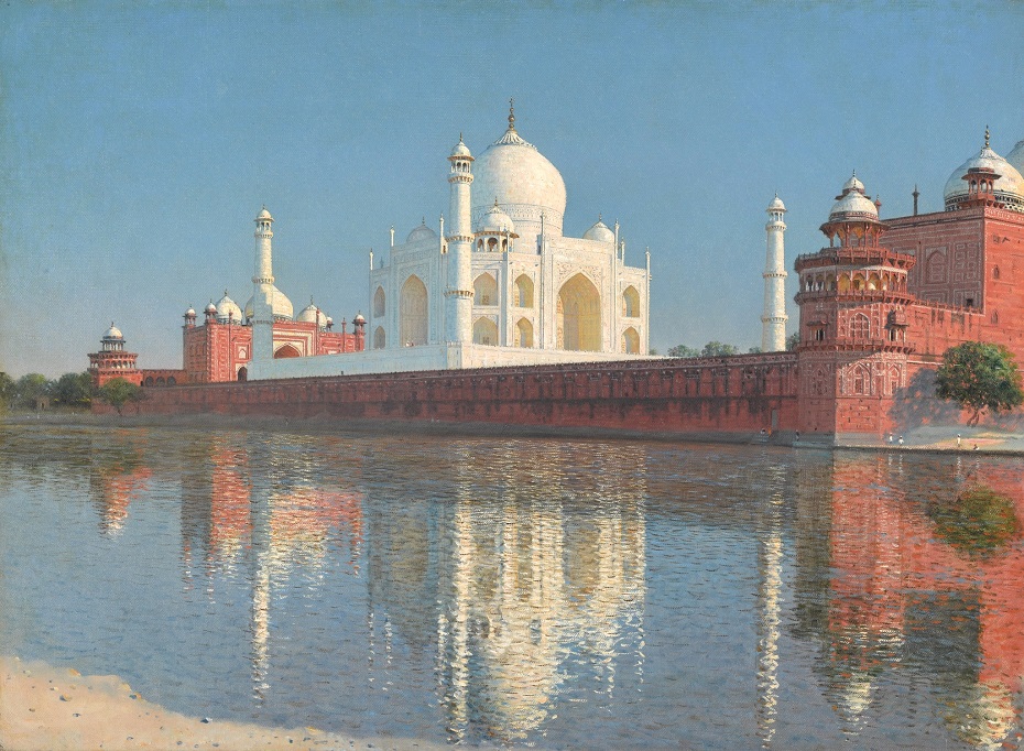 The Taj Mahal – mausoleum built by Sultan Shah Jahan for his wife Mumtaz Mahal – is a great architectural object of the 17th century. The artist considered it to be “one of the most splendid buildings in the world” and repeatedly depicted it from various angles and under different light conditions. Vereshchagin studied the lifestyle of the countries that he visited. The specific feature of his painting style is supreme, photographic accuracy of depiction. He uses bright, clear colours so that the whiteness and transparency of the marble looks especially impressive against the “fiery sky of the South” (as Russian poets liked to say). The Orient here is presented as a world of magic and miracles.