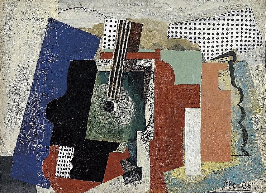 Pablo Picasso (1881-1973): Still-life with Door, Guitar and Bottles (1916). Statens Museum for Kunst, Copenhagen